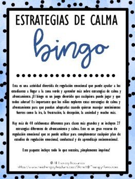 SPANISH VERSION – Calming and Coping Strategies Bingo Activity