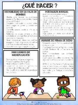 SPANISH VERSION Fine Motor Skills Strategies Activities 2 page tip sheet handout