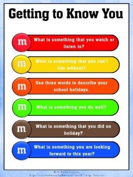 This is a fun intervention for individual or groups to support everyone to get to know each other and build unity and cohesion. Give everyone in the group six m&m’s each. For each colour, the student should answer that corresponding question. If possible, try to ensure that there is a range of colours so they don’t get the same question.