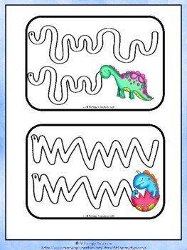 There are a total of 26 dinosaur themed scissor and tracing cards There is a variety of foundational shapes and formations ranging from straight to curved lines and everything in between needed for your child or students to develop pre-writing and writing development skills. These task cards encourage the student to control their pencil in the directional paths and strokes required for writing. These are bright, colourful and engaging cards which are great for early learners to develop and strengthen their fine motor skills.