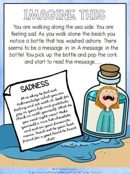 This summer counseling lesson resource encourages students to imagine that they are walking along the beach while they are in a particular emotional state and they come across a “message in a bottle” which is just perfect for what they need and want while they are in that emotional state.