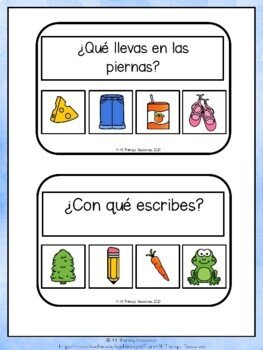 SPANISH VERSION Wh (What Questions) Task Cards – visual supports Speech Therapy
